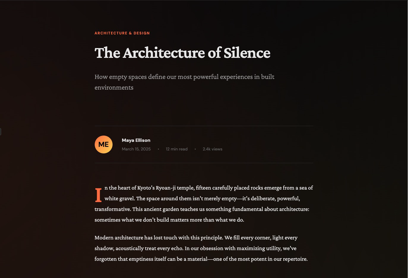 Prompt: Build a blog post layout with author bio, reading time, and related articles